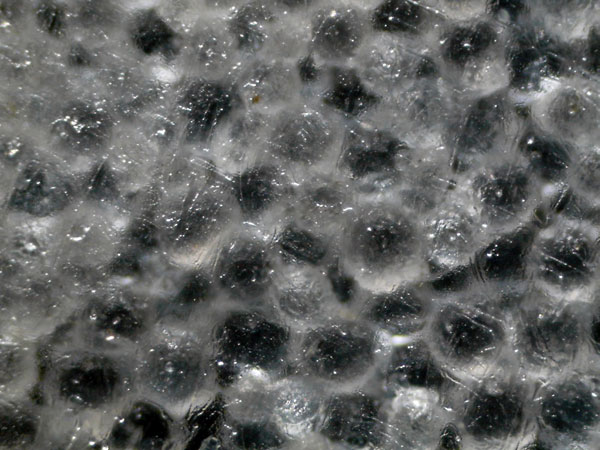 A photomicrograph of the compound. Note the spheroidal burnishing media and the translucent wax/grease binder: