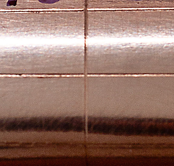 An approximately 8mm x 8mm photomicrograph of lines scribed in a metal surface, and polished with Bonded Burnisher™ compound.